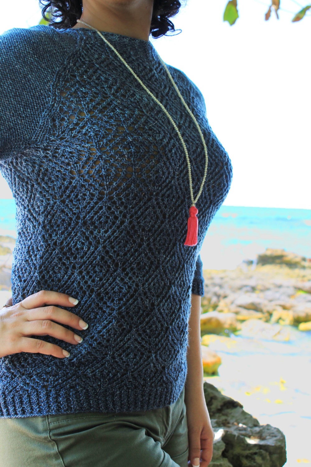 Worked from the bottom up, seamlessly in the round, you can adjust the length as you see fit. Want a summery crop top to layer over your summer dresses or throw on as a swimsuit coverup? You got it! Have your heart set on a tunic to wear with leggings? Go for it! Instructions are included for this modification. Lace is fully charted and written, and there is also a schematic.