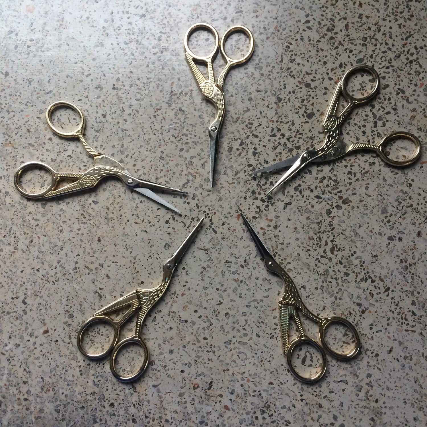 Heavy duty metal scissors measure approximately 3.5 in/8.9 cm tall. Just like your Grandma used to have in her sewing box! Great size for travel. These have a golden handle and body, while the tips are silver.