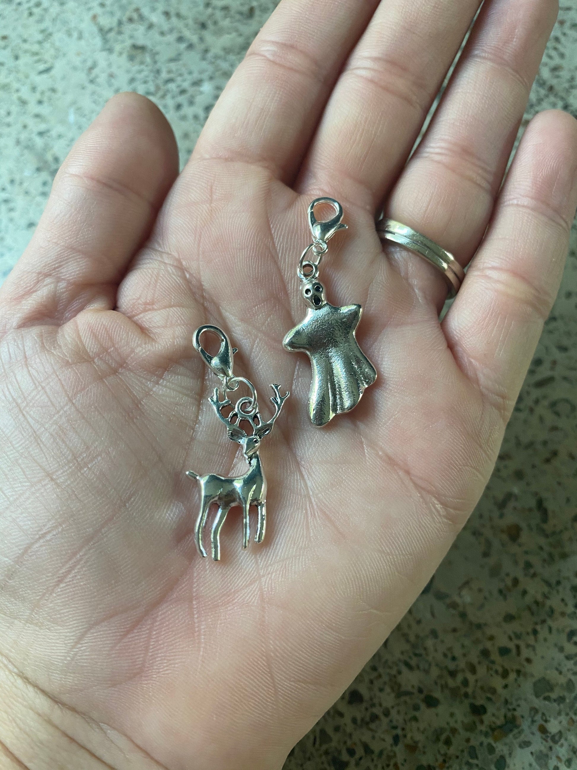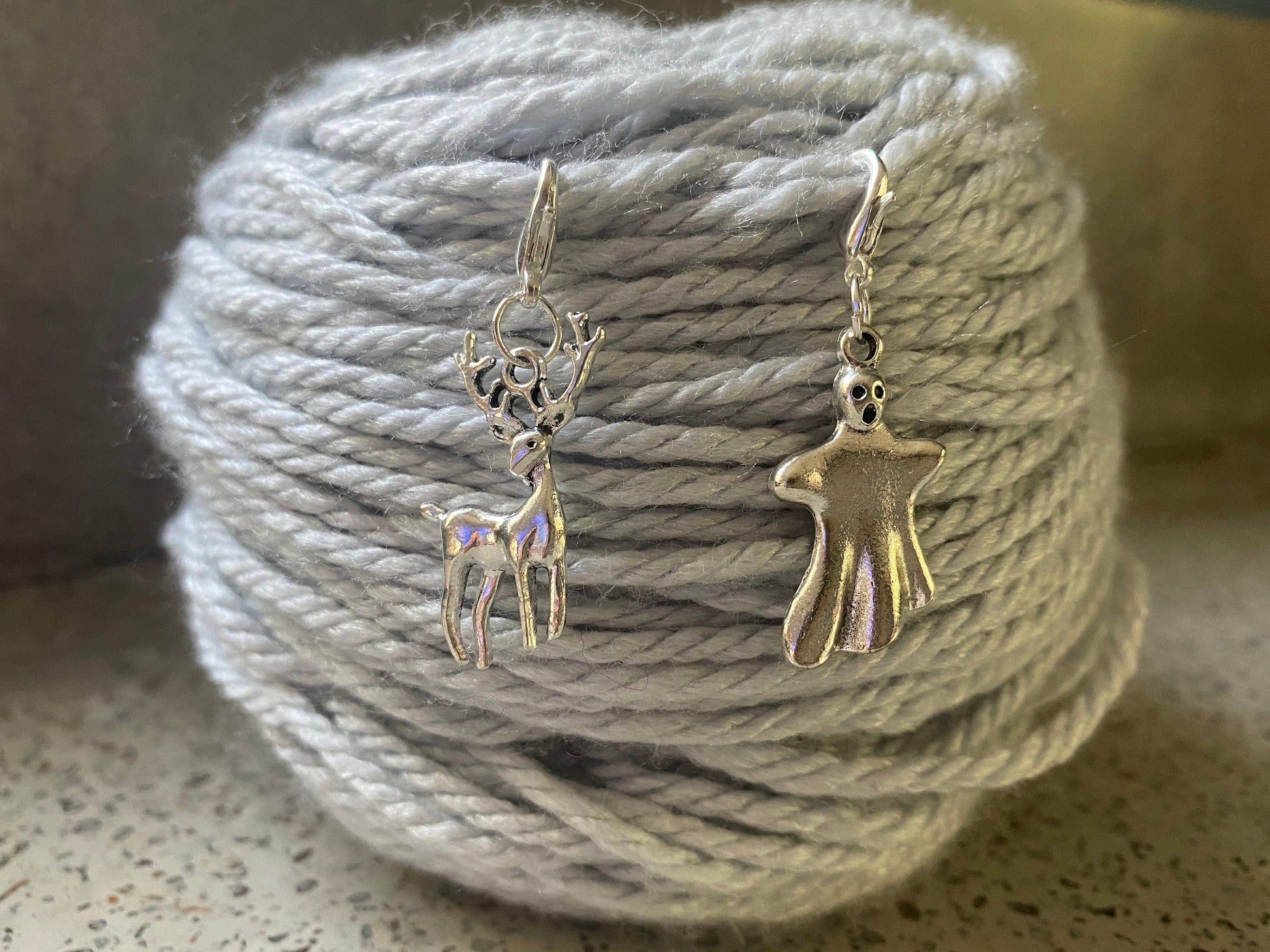 Do you want to attack your knitting, or protect it? The choice is yours with this set of removable charms that can be used as stitch markers, progress keepers, zipper pulls, or bag charms! You’ll receive one each of the stag and the dementor.