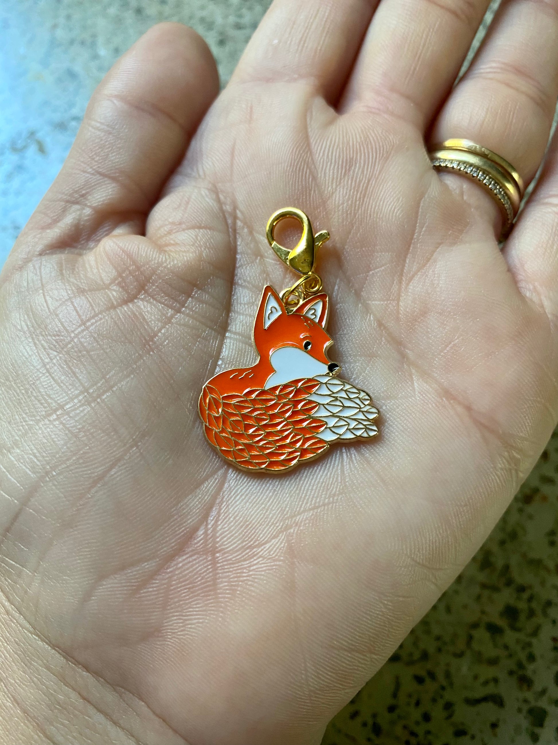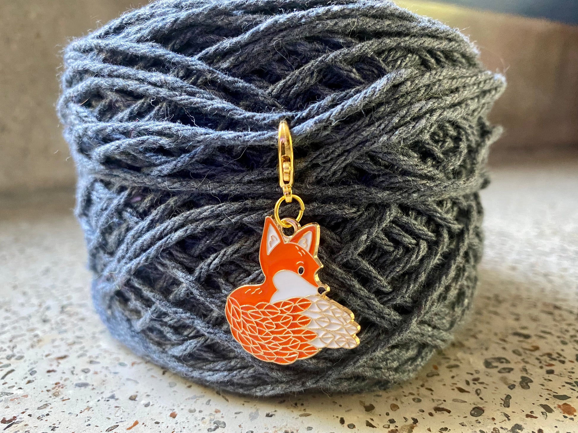 This light, enamel charm is just the thing to spruce up your projects, bags and zippers this fall. Each fox has been handwired onto a golden lobster clasp for keeping track of your progress while knitting or crocheting. They’d even be cute as zipper pulls!