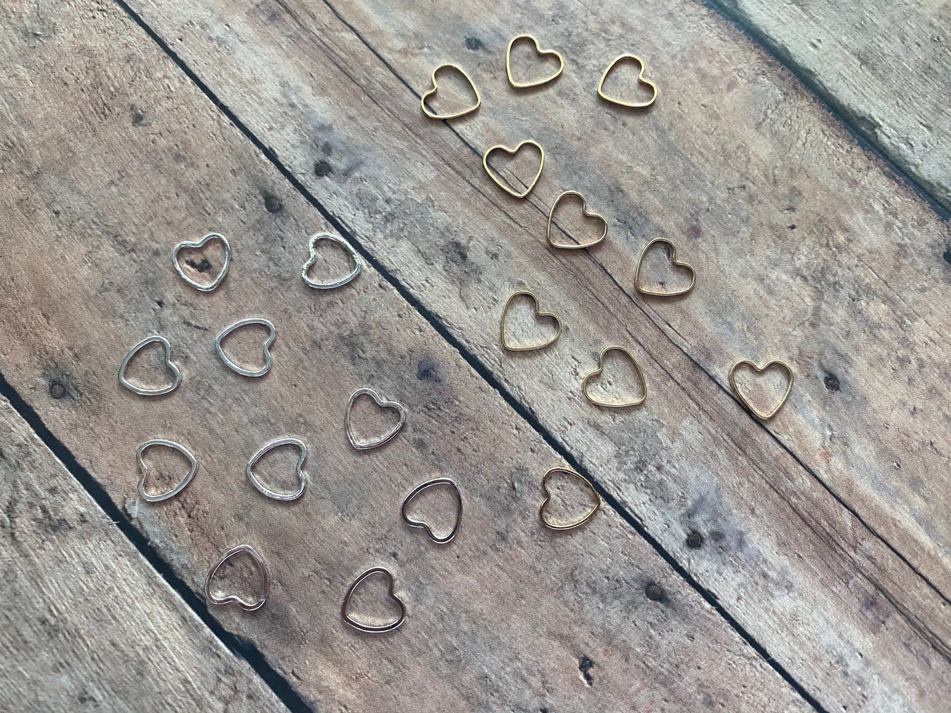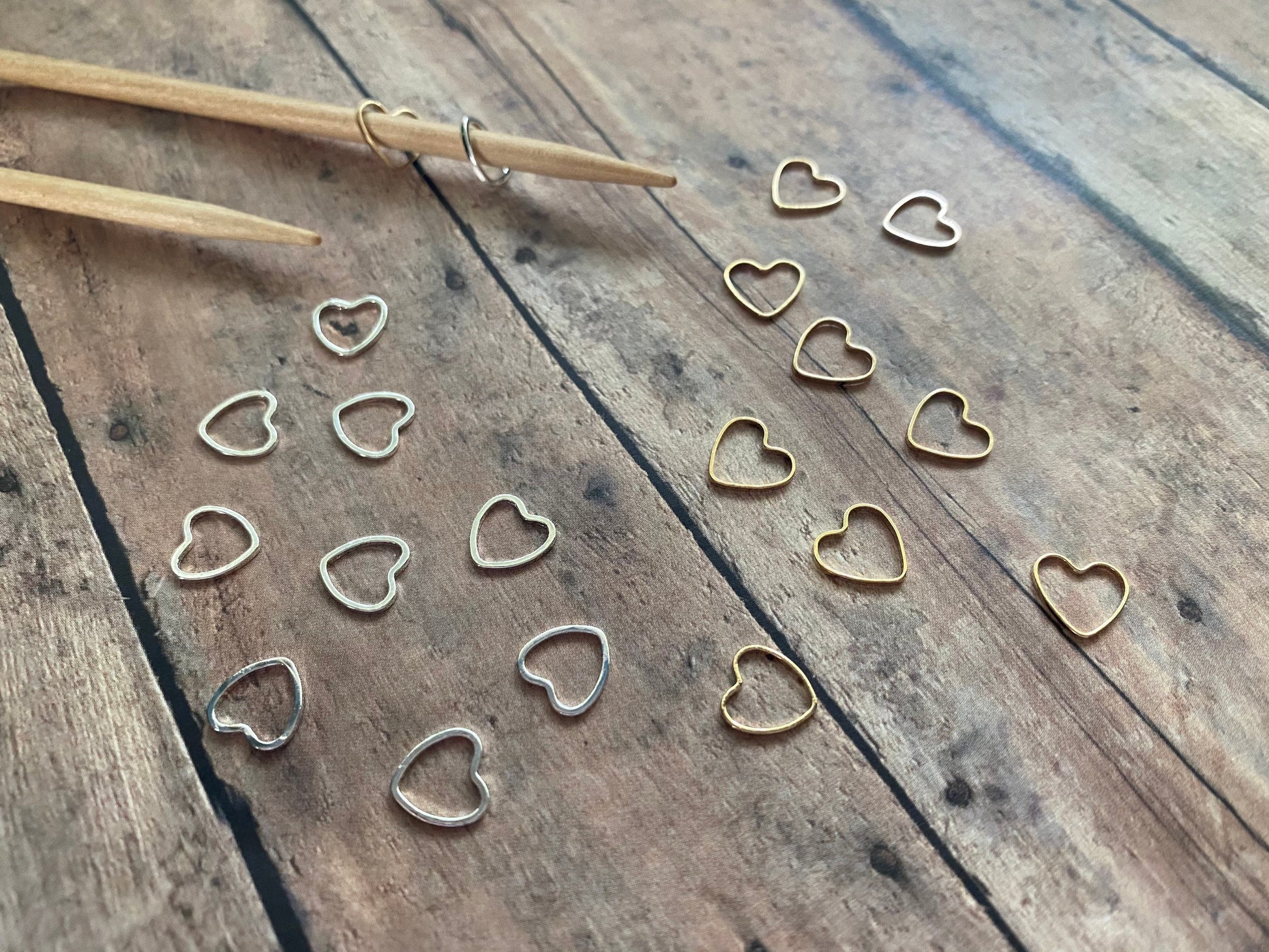 Truly snag free markers to keep your most delicate projects safely organized! This set of 10 thin, closed ring hearts will fit up to a US 7/4.5 mm needle.