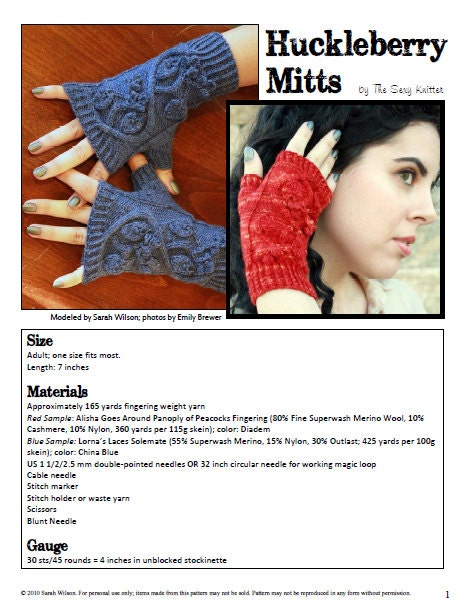Both line-by-line written instructions and charts are given for each mitt in this 6-page PDF.