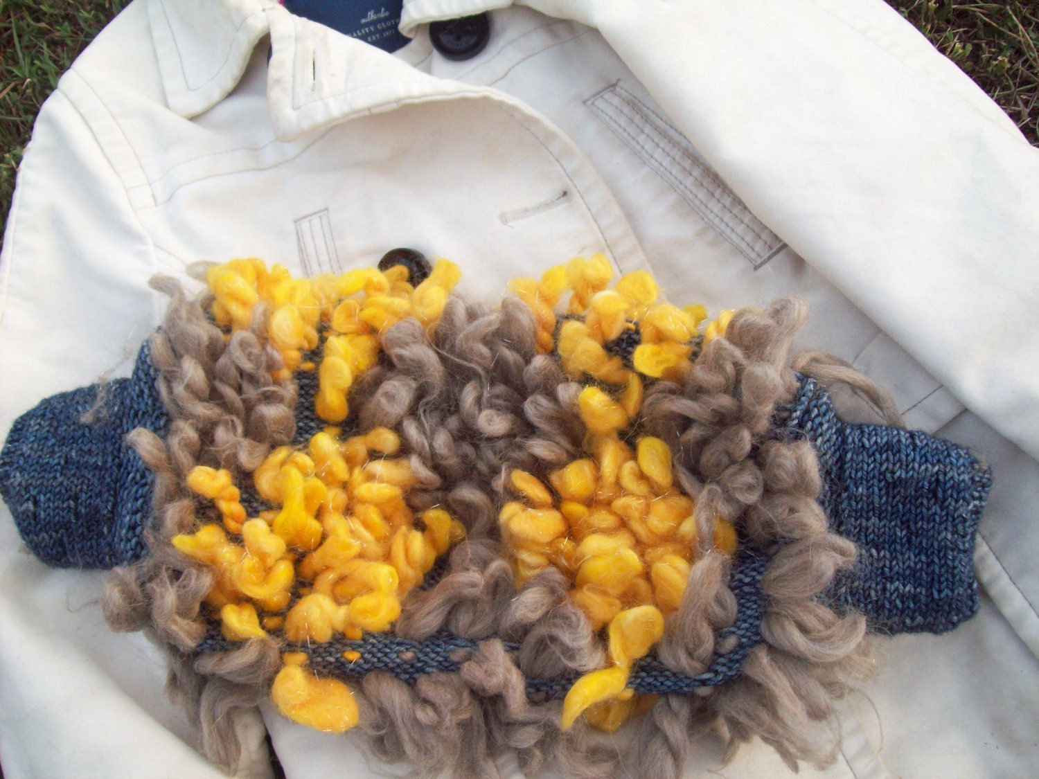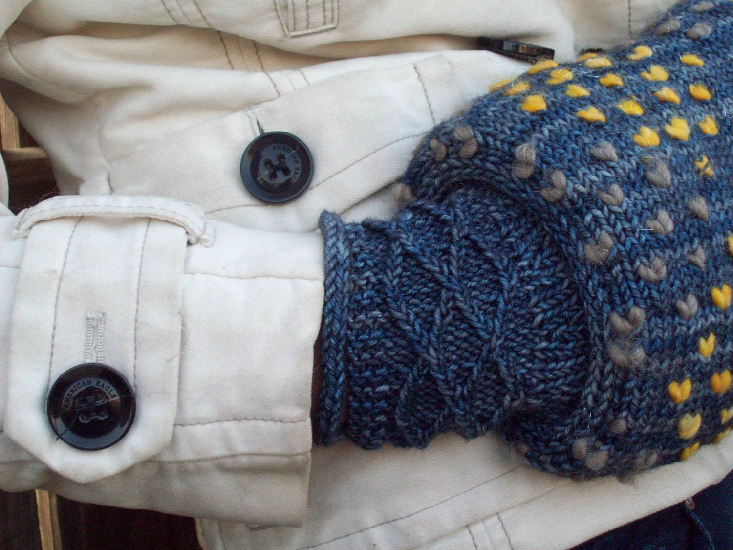 Fun facts: The muff uses just 200 yards of worsted weight yarn; the colorwork is achieved by thrumming with two different colors across the body of the muff!