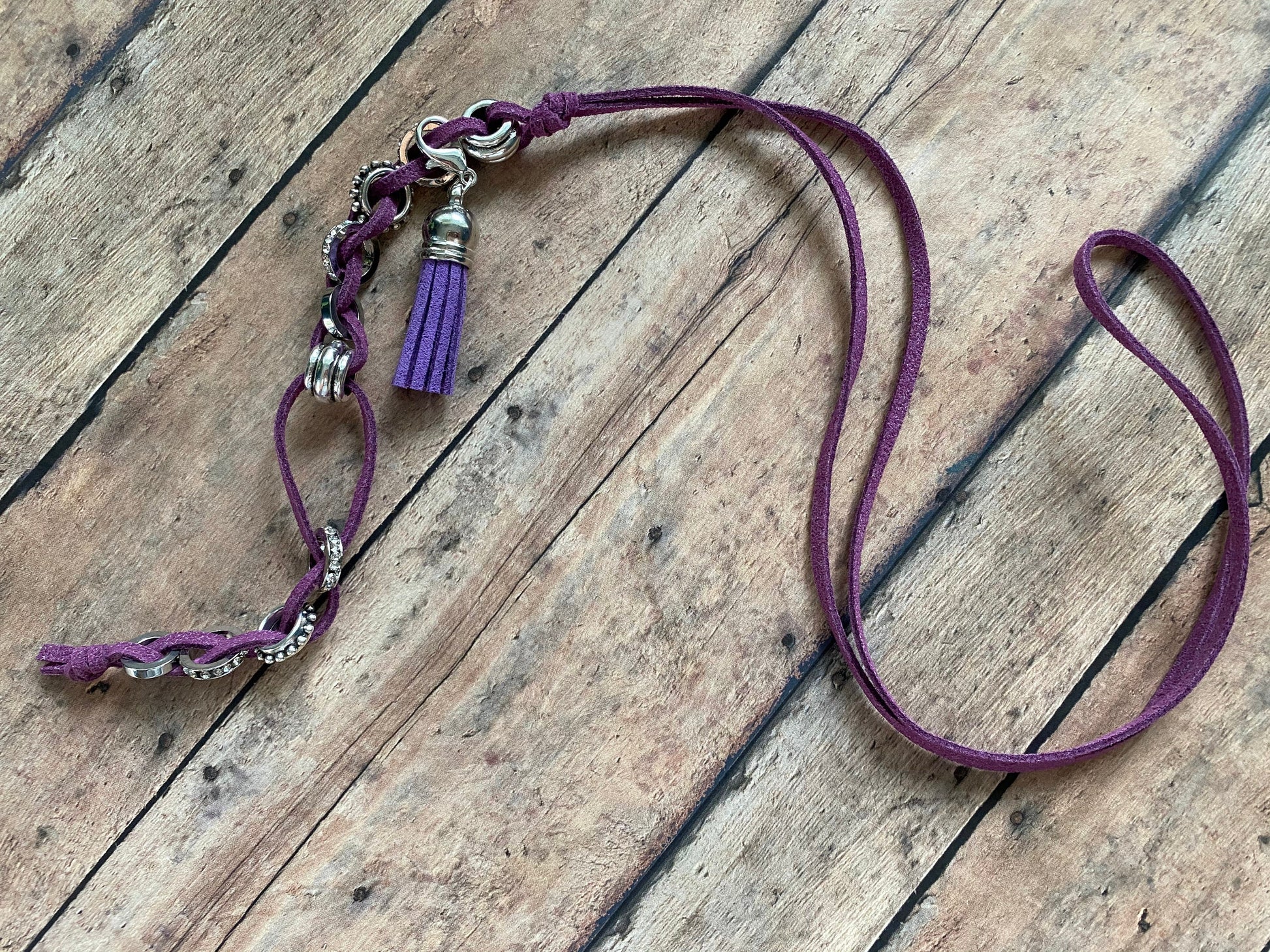 Necklace arrives with one tassel progress keeper, in the color of your choice (shown in third photo):