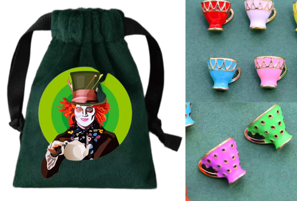 50 custom, Mad Hatter stitch marker pouches w/5 markers each @ $6.50: $325.00