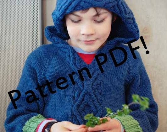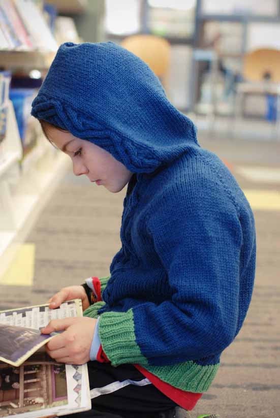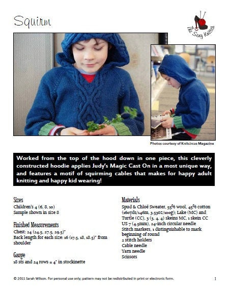 Worked from the top of the hood down in one piece, this cleverly constructed hoodie features a motif of squirming cables that makes for happy adult knitting and happy kid wearing!