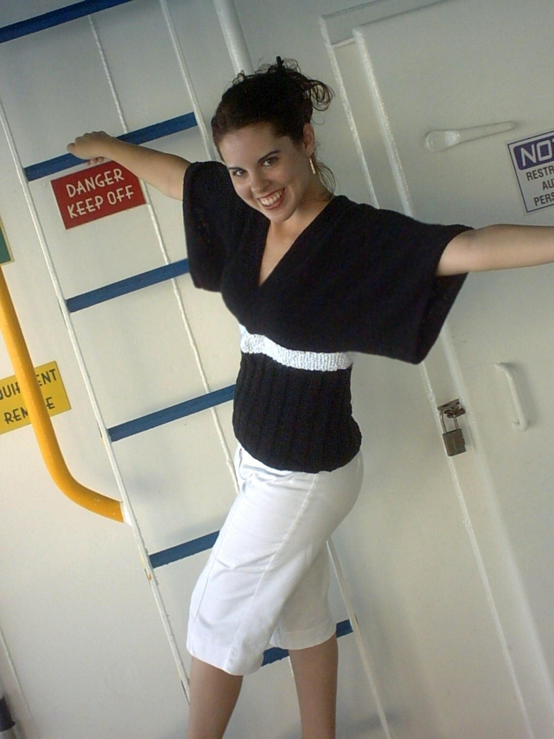 Named after my favorite flower, an Asian lily, this pattern is so simple that even those with the most basic skills can finish it! The appeal of this piece is that the entire sweater is made from four rectangles, and therefore requires no shaping whatsoever. If you can knit, purl and pick up stitches, you can make this sweater! The rectangles forming the sleeves are overlapped and joined to the bodice horizontally. When worn, the sleeves ingeniously form a pretty V-neck with a wrap effect. For those with a hatred of finishing work, or those looking to add a little more flair to their knitting, Stargazer can be made almost seamless by knitting the second version, which picks up stitches from the bottom of the sleeves and knits the bodice in the round, top down.