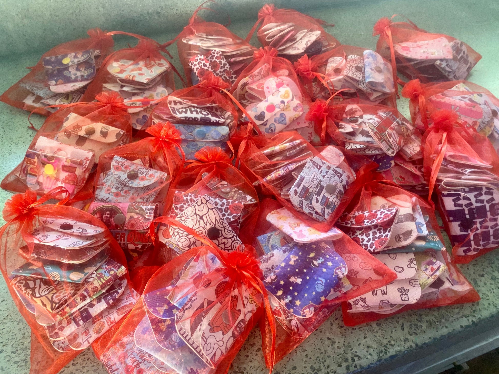 Love a fun surprise in the mail? Want to send someone else a little gift? I’ve got you covered with this bundle! You will receive an organza bag containing 10 unique prints of empty vinyl pouches, handmade by yours truly. I’ve included a photo of the whole pile to give you an idea of the types of shapes and prints I have available, just for example purposes. The mix of prints includes everyday prints like flowers, animals, and food, and also fandom prints like Doctor Who, Harry Potter, and Disney (just to name a few)!